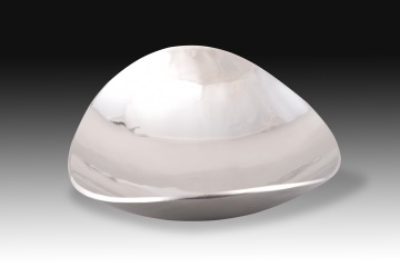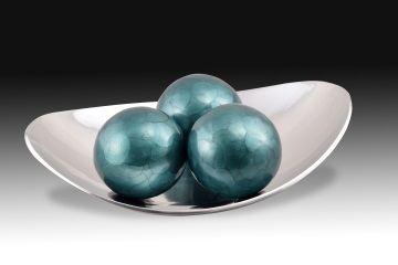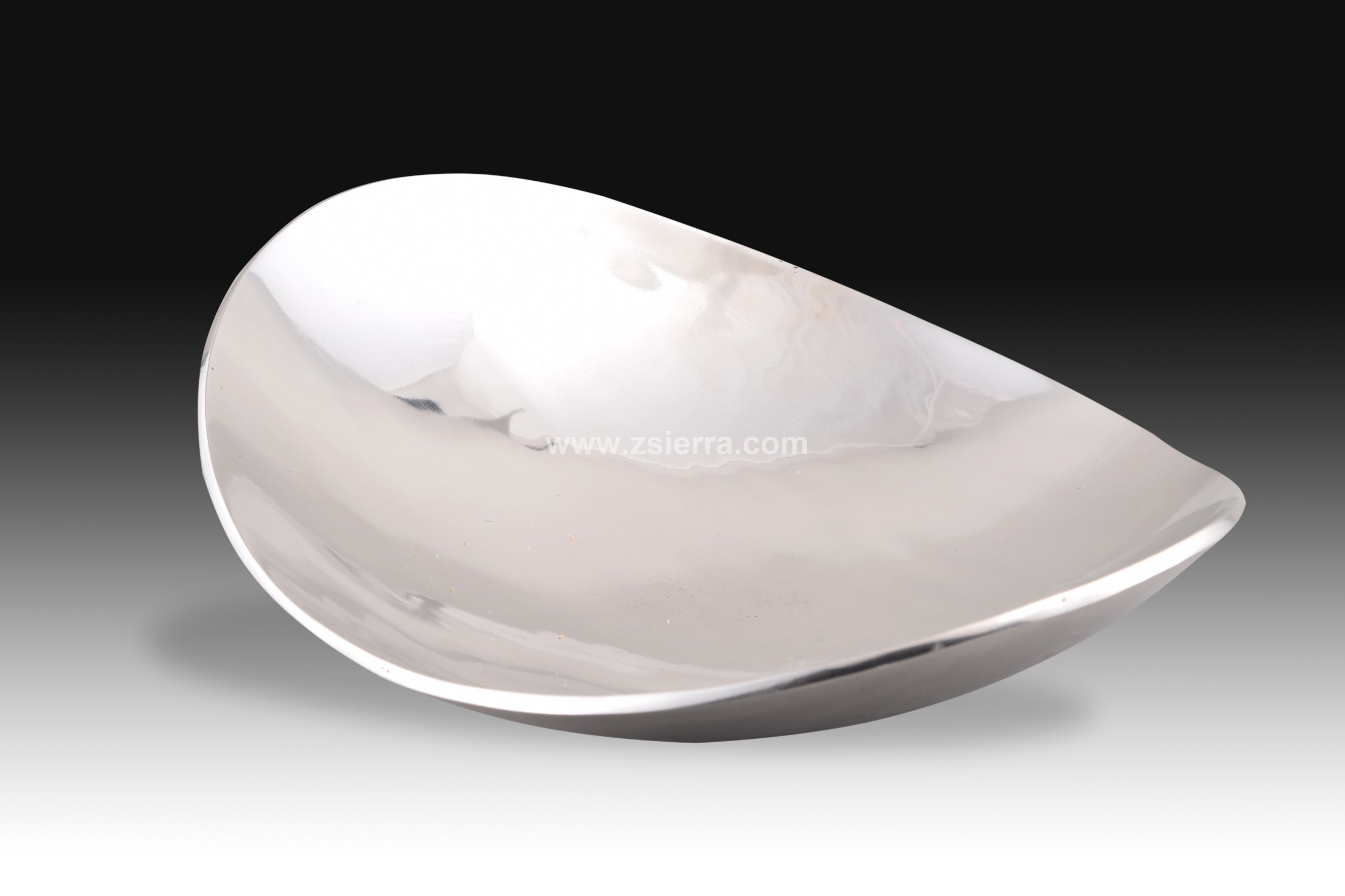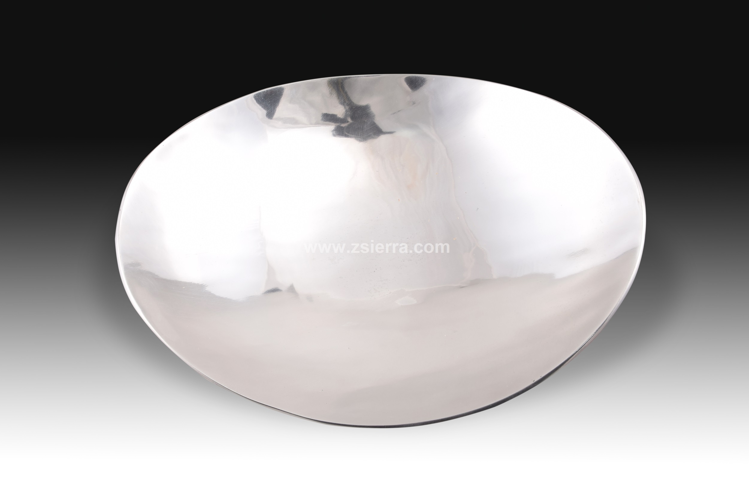 Tray. Aluminum. Oval aluminum tray shaped like a boat (ends curved upwards). Only in this detail would it recall examples from the 19th century, because in the lines and the material it shows a clear influence of industrial design. Weight 800 gr. · Size: 35x27x10 cms.