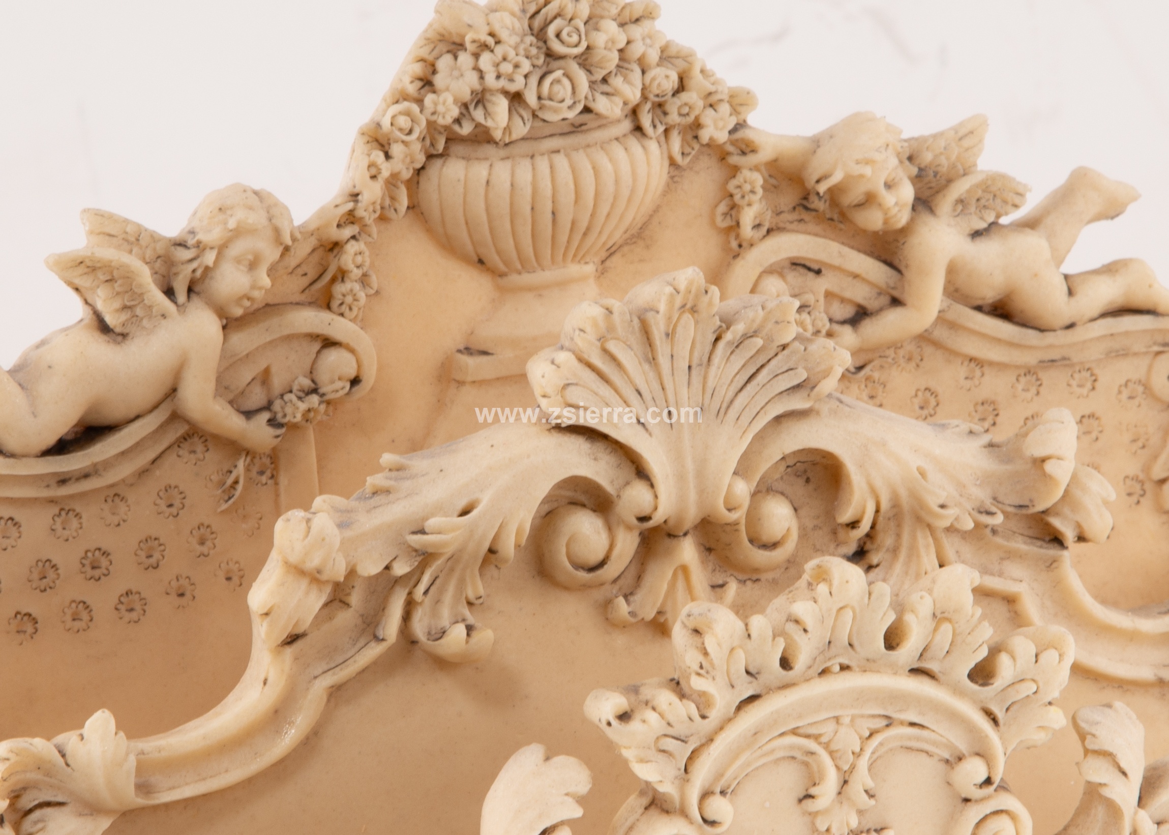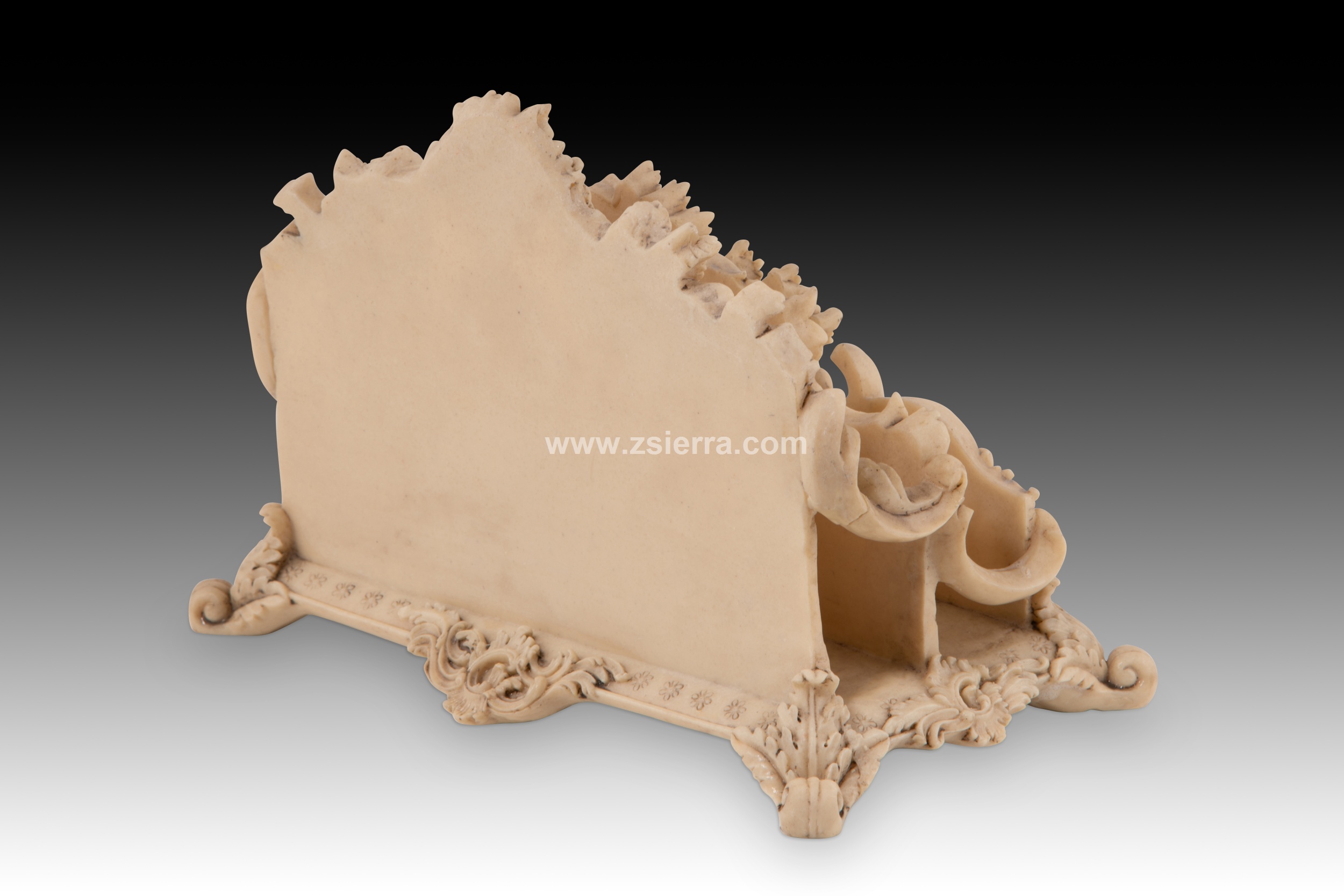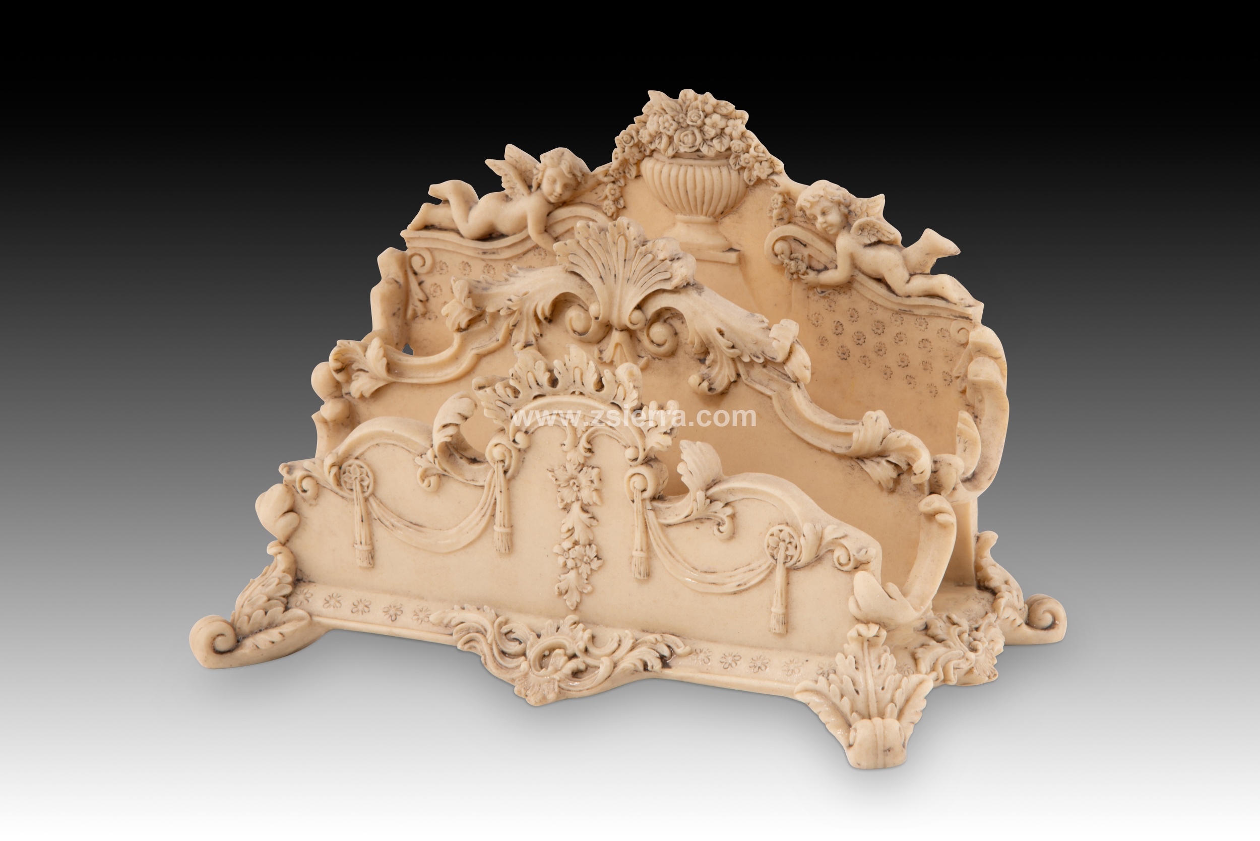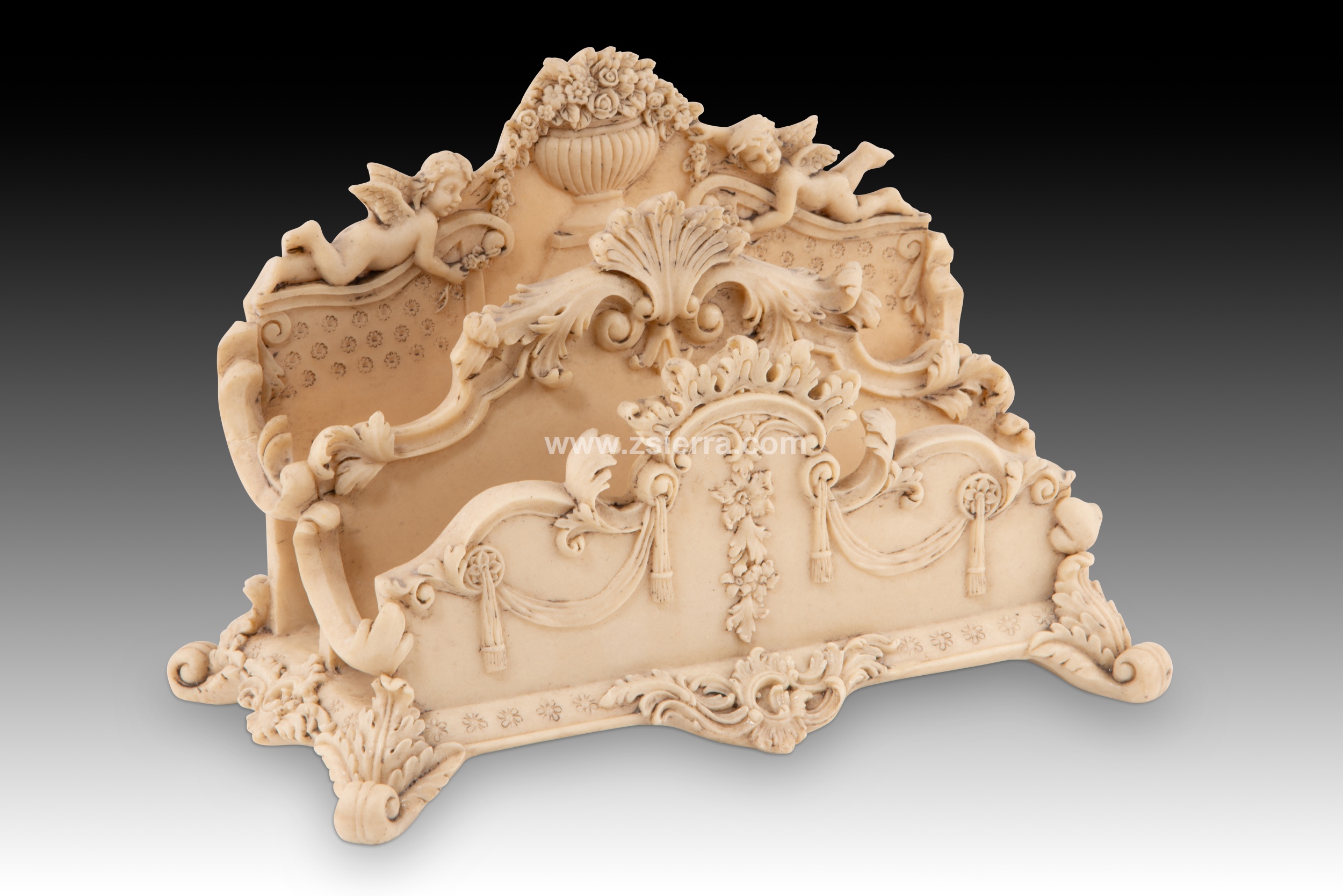 Letter holder. Resin. 20th century, following 19th century models. Desk letter holder with two compartments made of resin and decorated with putti, vases, flowers and architectural and plant elements of clear classicist influence, following French models of the 19th century.