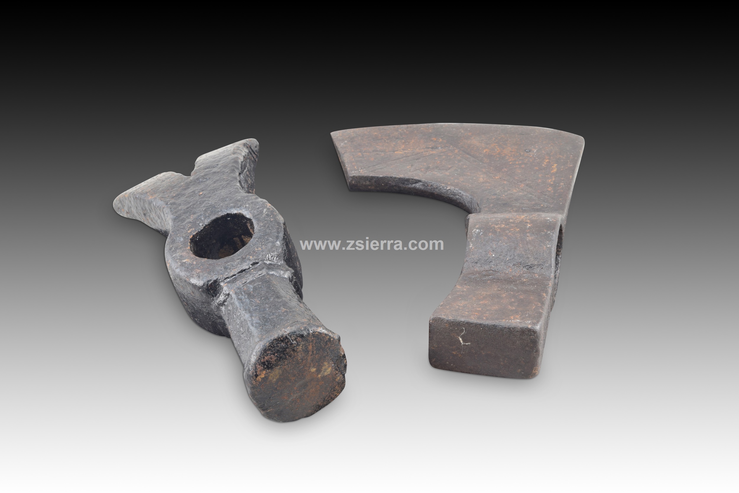 AXE AND HAMMER (WITHOUT HANDLES). WROUGHT IRON. 17TH CENTURY.