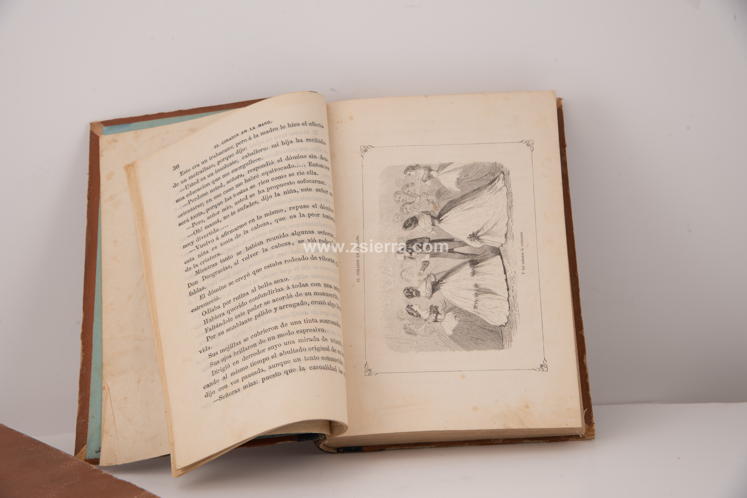 “The heart in the hand. Memoirs of a mother. Novel of customs”. PÉREZ ESCRICH, Enrique. Two volumes. Madrid, Miguel Guijarro Editor’s Bookstore, 1863. Work published in two volumes by the Miguel Guijarro Bookstore, with illustrations. Its author, Enrique Pérez Escrich (Valencia, October 6, 1829 - Madrid, April 24, 1897), also known by his pseudonyms Carlos Peña-Rubia and Tello, was a Spanish writer and playwright, and is considered one of the Spanish masters of the nineteenth-century serial novel.