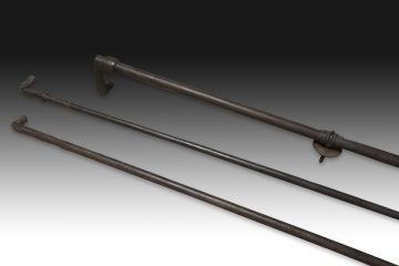 Espagnolette. Wrought iron. 18th century. An iron element made up of several pieces firmly joined together, with simple decoration based on rings and other details, used to close a door or window. This type of piece was very common in the construction of important residences. Available 3 pcs. Price per unit.