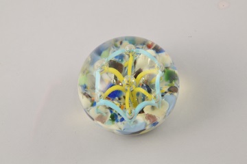 Paperweight. Glass. Paperweight made of glass combining transparent with various colours. Various models are available, and the price is indicated per unit. Weight of the set: 3 kg. Price per unit.