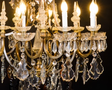 CANDELIER. BRONZE, GLASS. EARLY 20TH CENTURY.