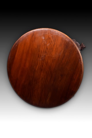 Chippendale style side table. Mahogany wood. English school, 19th century. A round-topped table with slightly cabriole-shaped legs, finished with ball claws and decorated on the top with fine carvings of plant elements. This is the name given to a style pioneered by Thomas Chippendale that was very well-known and common in English cabinetmaking during the 18th and 19th centuries.