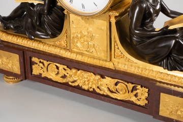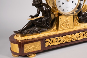 Reloj de mesa, “L’Etude” y “La Philosophie”. Bronce sobredorado, Rouge Griotte, etc. Maquinaria Mesnil, París, Francia, hacia 1815.