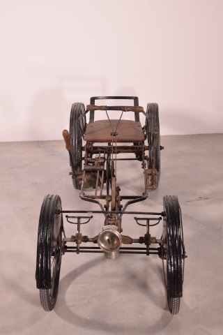 Vehículo de tracción que consta de cuatro ruedas, asiento unipersonal, un mando al frente para accionar la marcha y dos palancas (una a cada lado, una actúa de freno y otra está relacionada con el movimiento) y un faro de acetileno al frente. El eje delantero se acciona mediante los pies para tomar curvas. Es muy similar a unos vehículos conocidos como “Irish Mail”, los cuales derivaron de las dresinas o zorrillas que se empleaban sobre las vías en la construcción y mantenimiento de las vías de los ferrocarriles. Según otra teoría, a estas mismas dresinas, especialmente cuando no se empleaban sobre las vías, se las llamó coche “Irish Mail”. Véanse, por ejemplo, ejemplos infantiles del catálogo de A. C. McClurg and Co.; el Irish Mail Deluxe Racer de 1938 de otra empresa; o con el Ben Hur Racer Irish Mail hand-car de 1920.