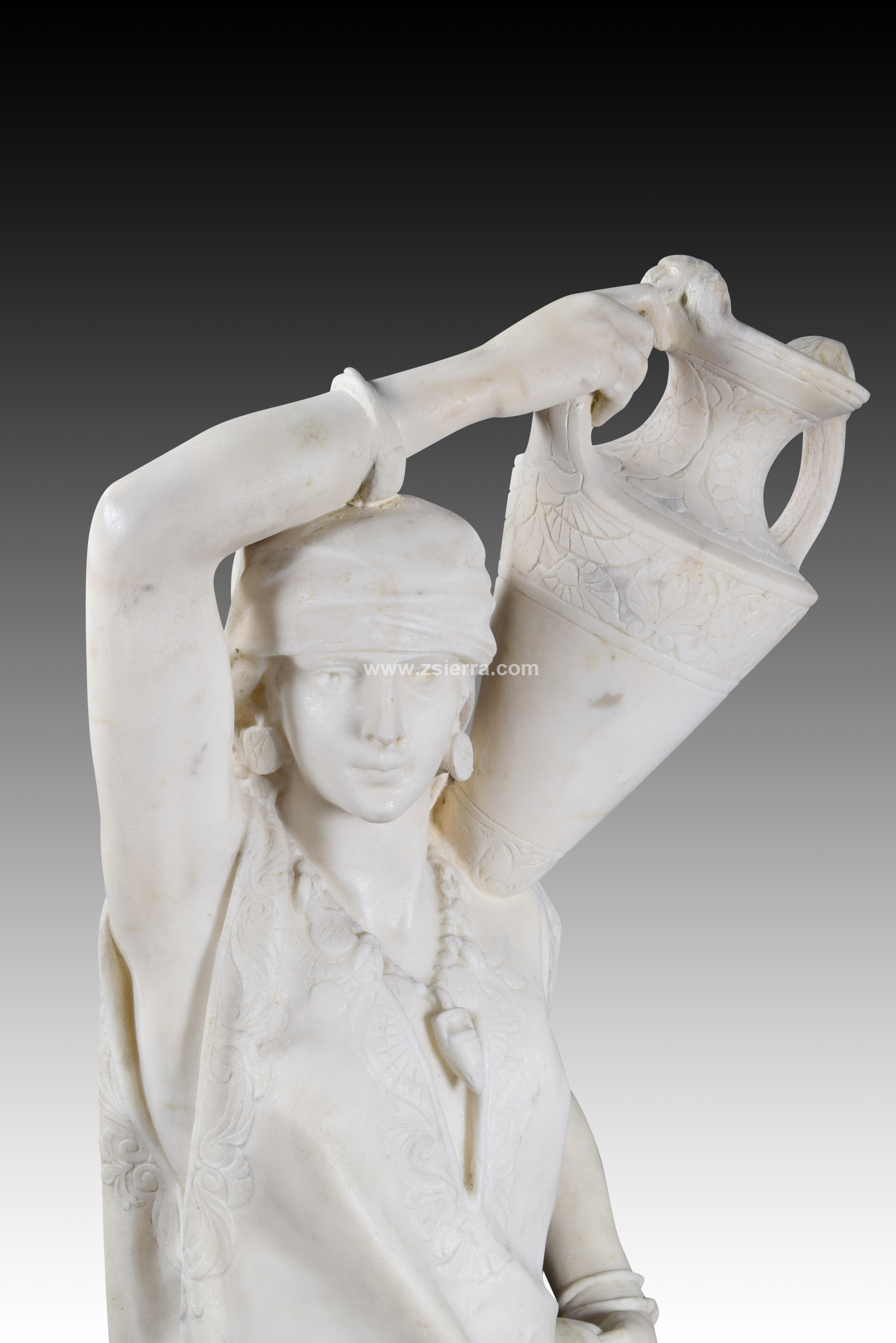 Rebeca en el pozo. Mármol. Escuela italiana, posiblemente siguiendo modelos de PUGI, Guglielmo (Italia, 1850-1915).