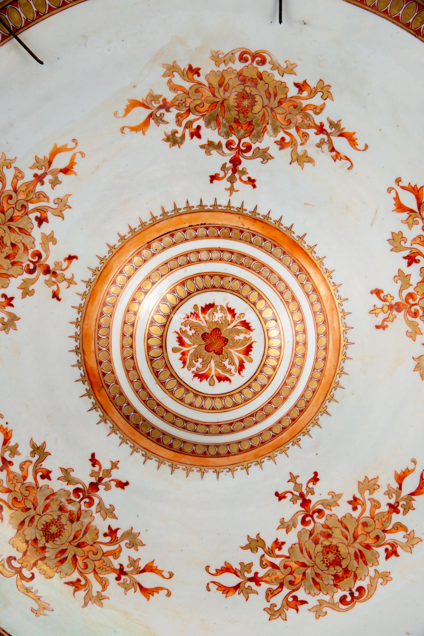 Plato, rojo de hierro y dorado. Porcelana esmaltada. China, Dinastía Qing, primera mitad del siglo XVIII.