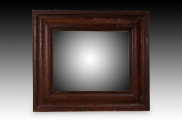 Marco ligeramente rectangular realizado en madera ebonizada y decorado con una serie de molduras lisas de distintos anchos en disminución de altura hacia el interior. Es preciso destacar tanto la profundidad del marco como las dos piezas de metal (con formas particulares y una crestería al exterior) que sirven para colgarlo de la pared.