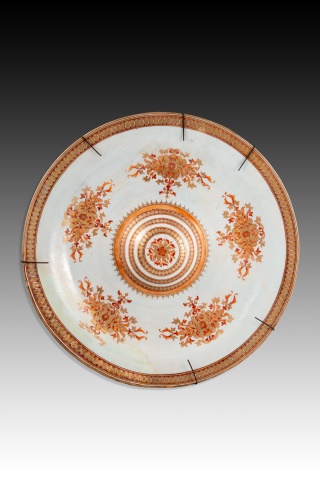 Pareja de especieros de porcelana esmaltada, cada uno, con una base con ondas en relieve de recuerdo rococó sobre la que hay dos cestas con asas y flores en relieve al exterior. Entre las cestas aparece sentada una figura: el joven aparece con sombrero, la muchacha sostiene un ramo de flores en la mano, y ambos muestran también influencia del siglo XVIII en sus ropajes. El predominio de blanco y azul recuerda a las primeras porcelanas chinas en llegar a Europa de manera masiva, trabajos en los que se inspiraron numerosas fábricas europeas. En los interiores de las cestas se pueden ver unas flores que recuerdan al conocido “onion pattern” de Meissen, pero muy simplificado.