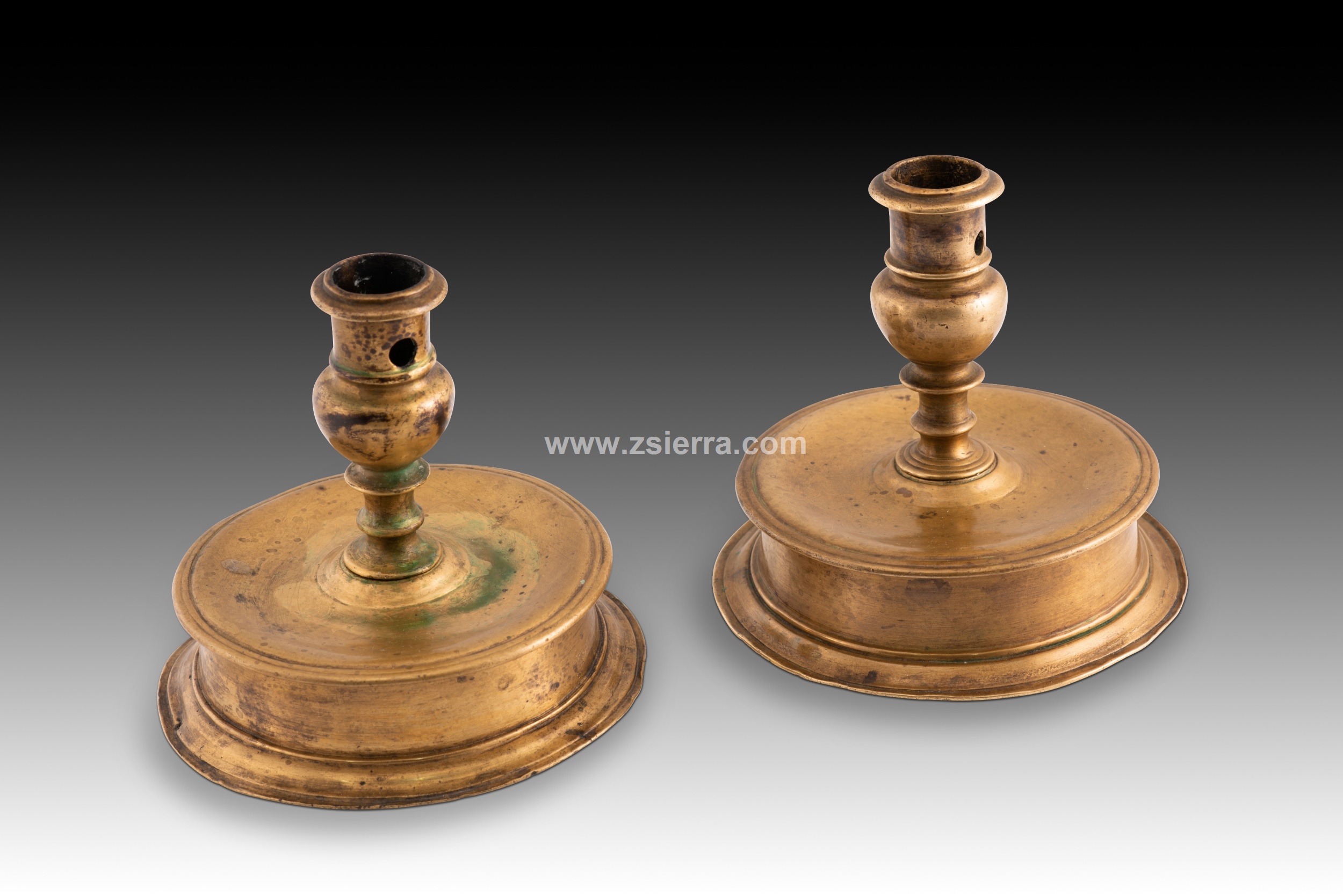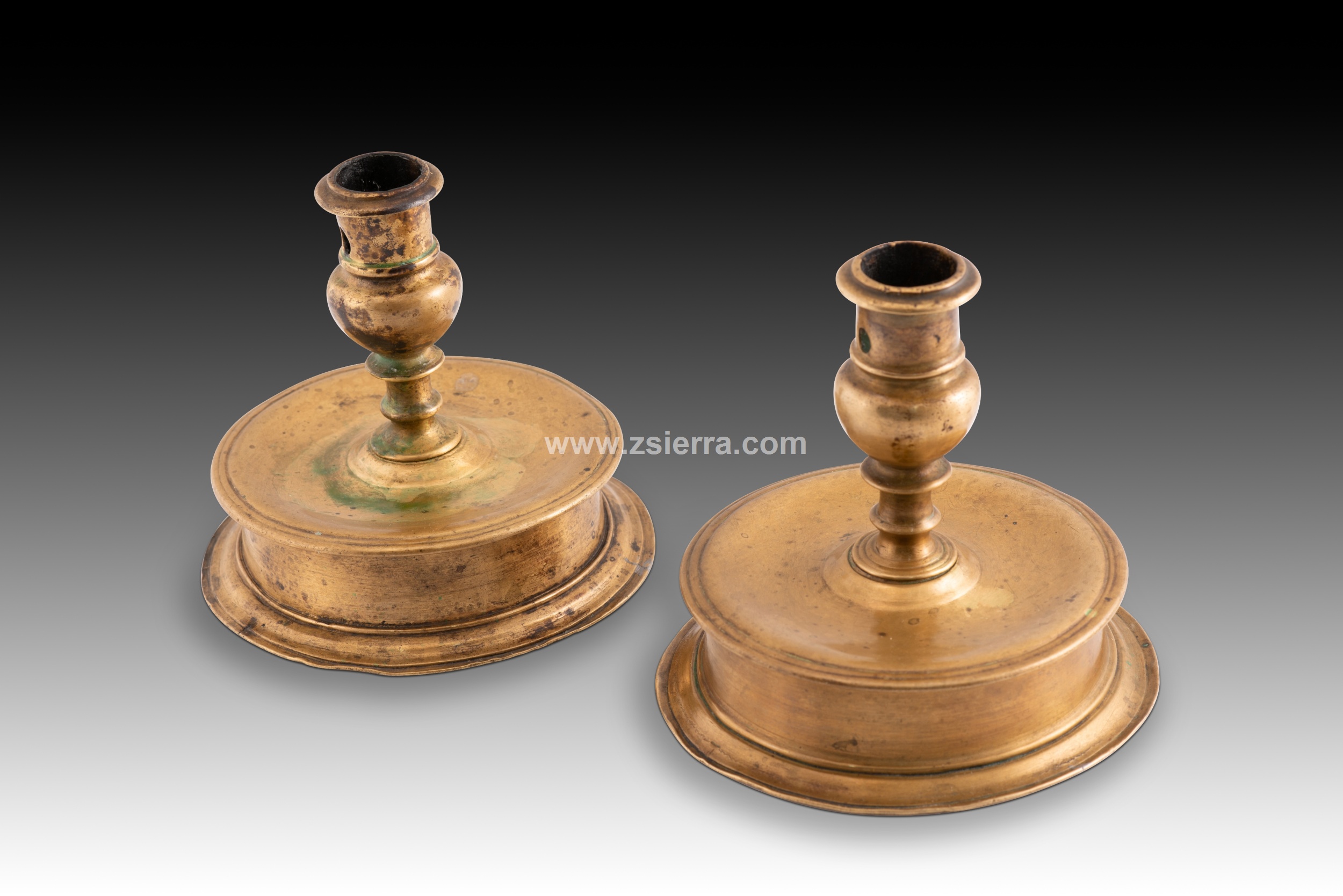 PAREJA DE CANDELEROS EN BRONCE. SIGLO XVI