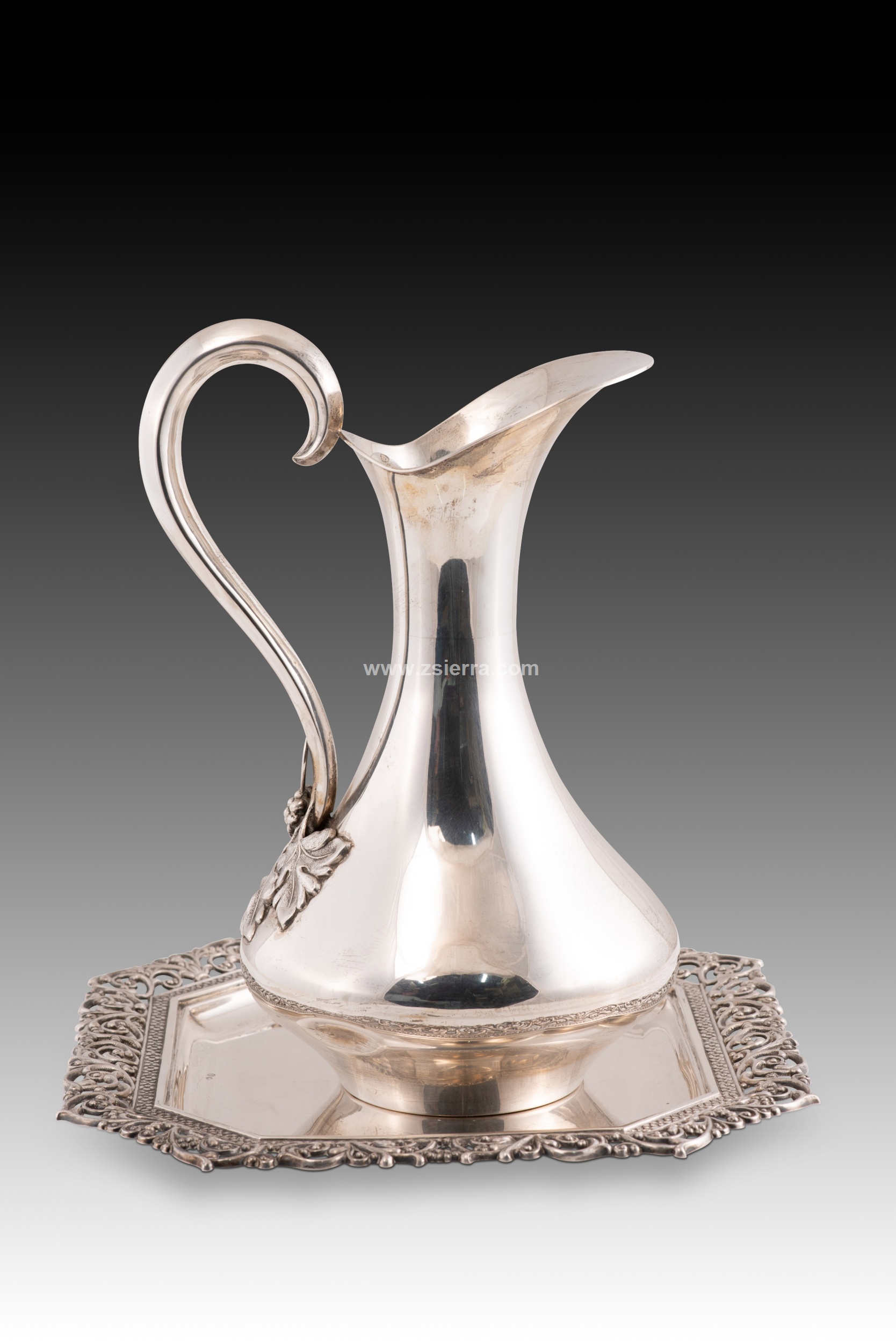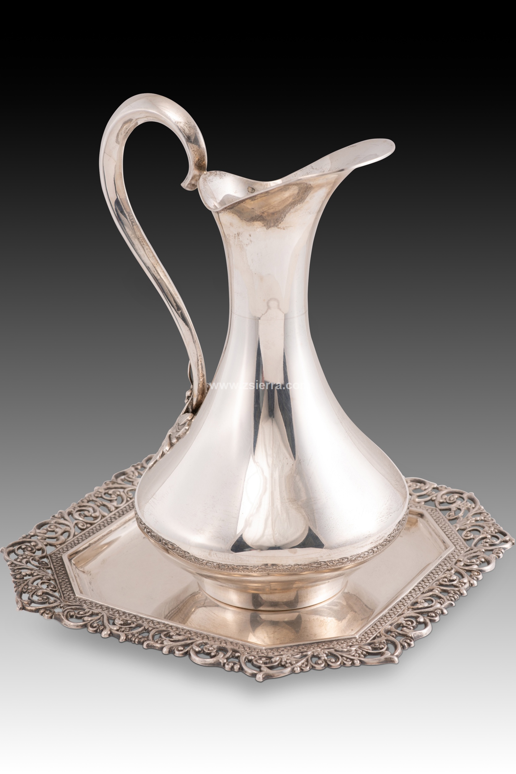 Jarra con bandeja. Plata (915). España, siglo XX.