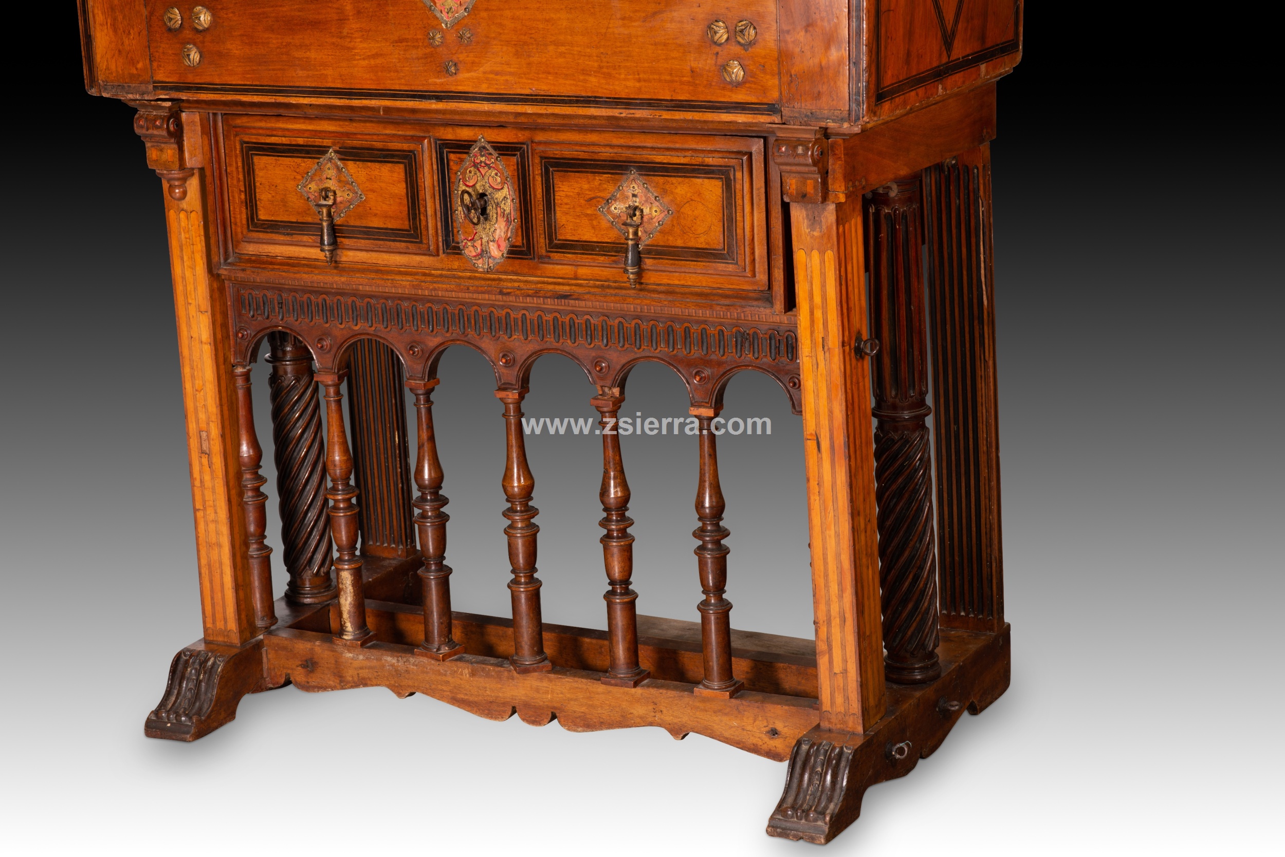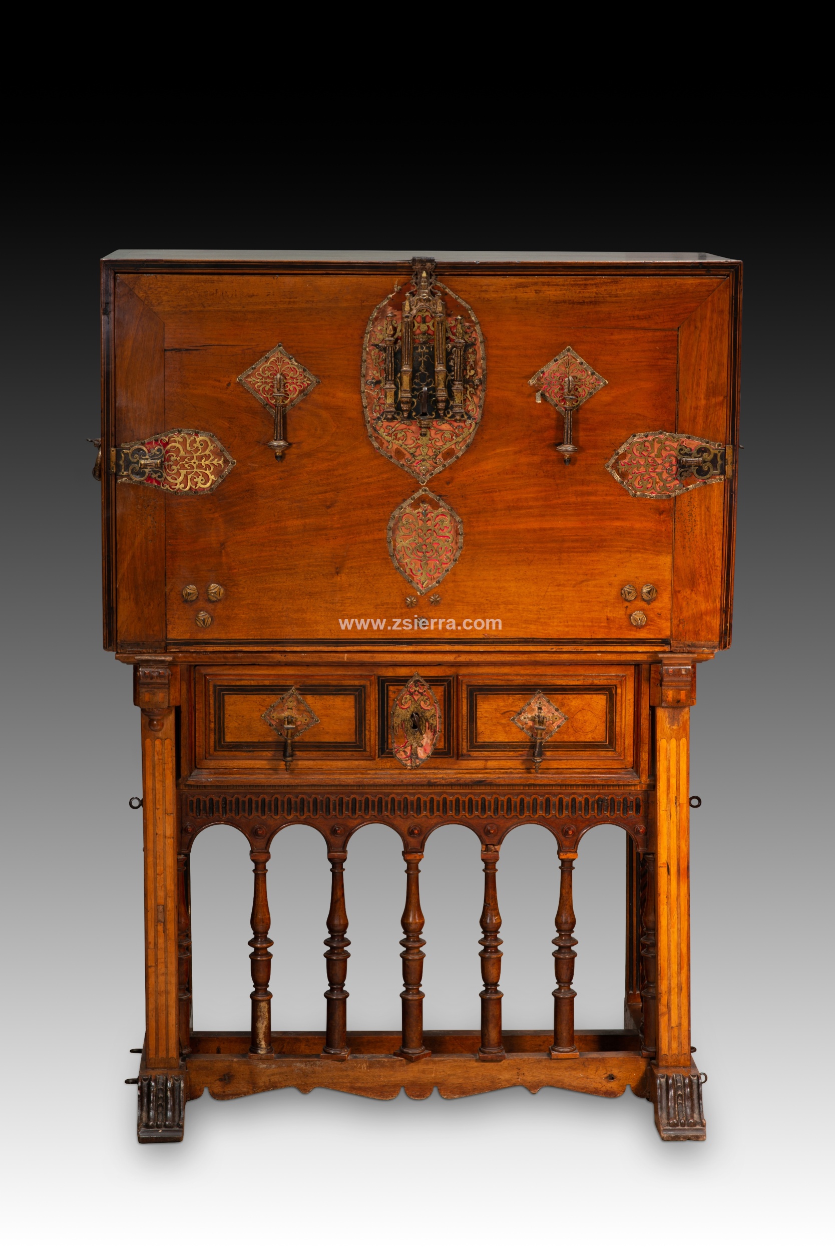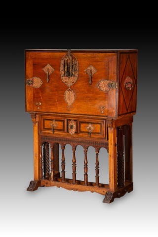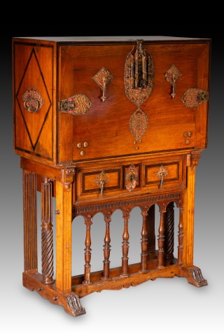 Papelera o bargueño con pie de puente. Madera, hierro, bronce, etc. Escuela española, finales del siglo XVI.