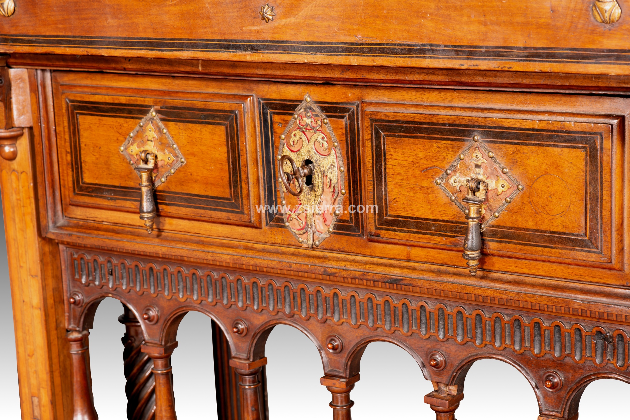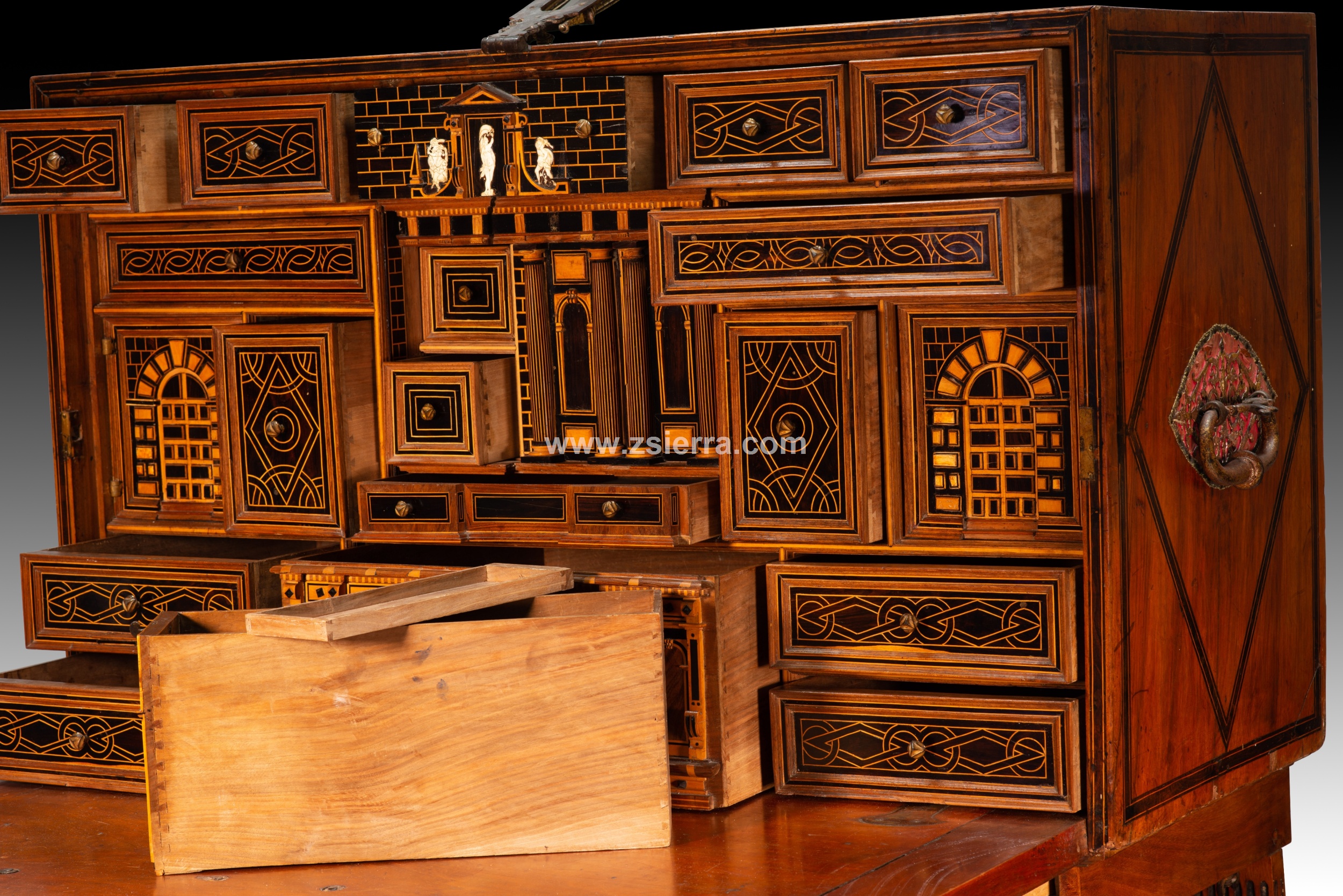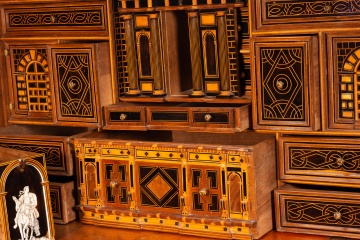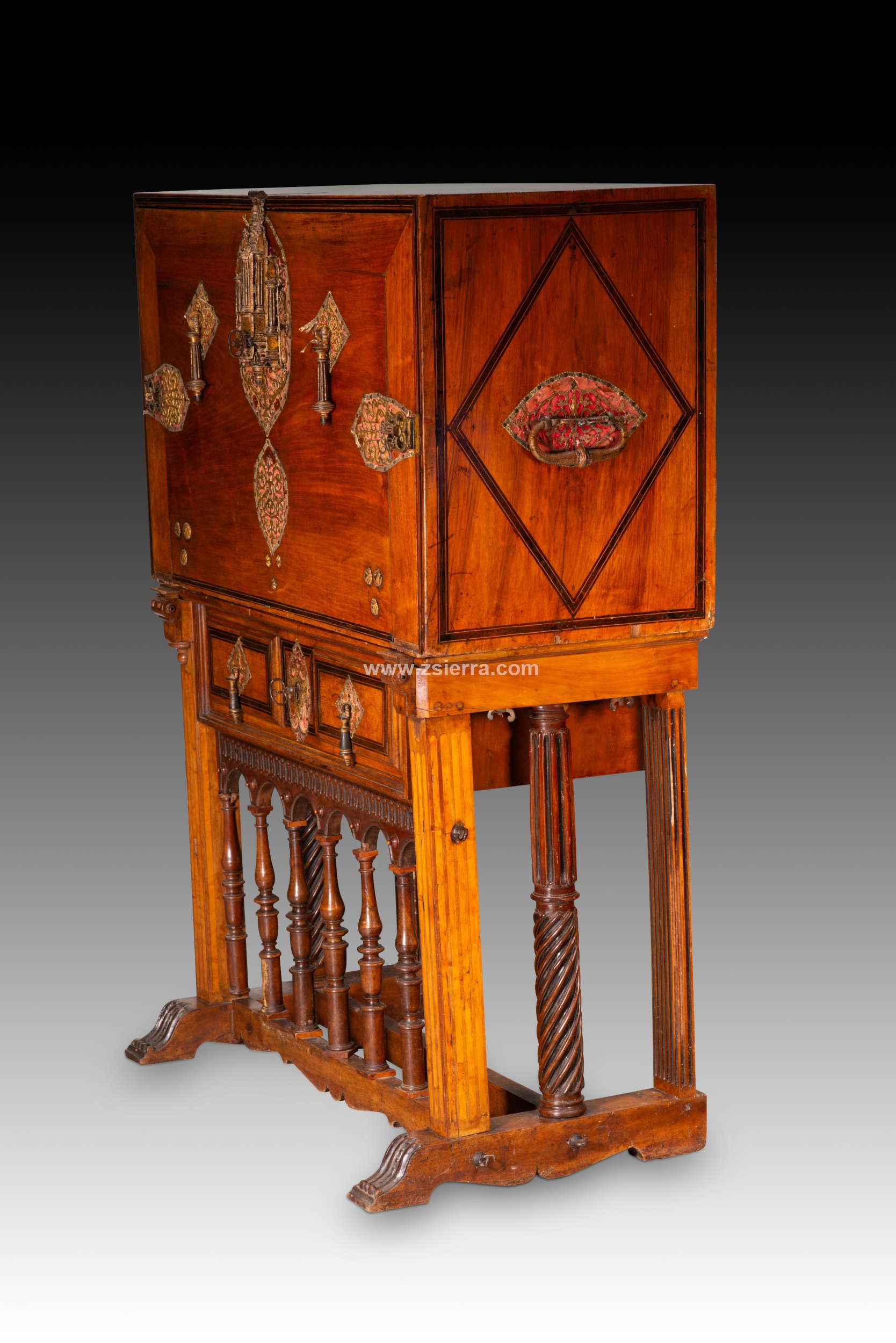Papelera o bargueño con pie de puente. Madera, hierro, bronce, etc. Escuela española, finales del siglo XVI.