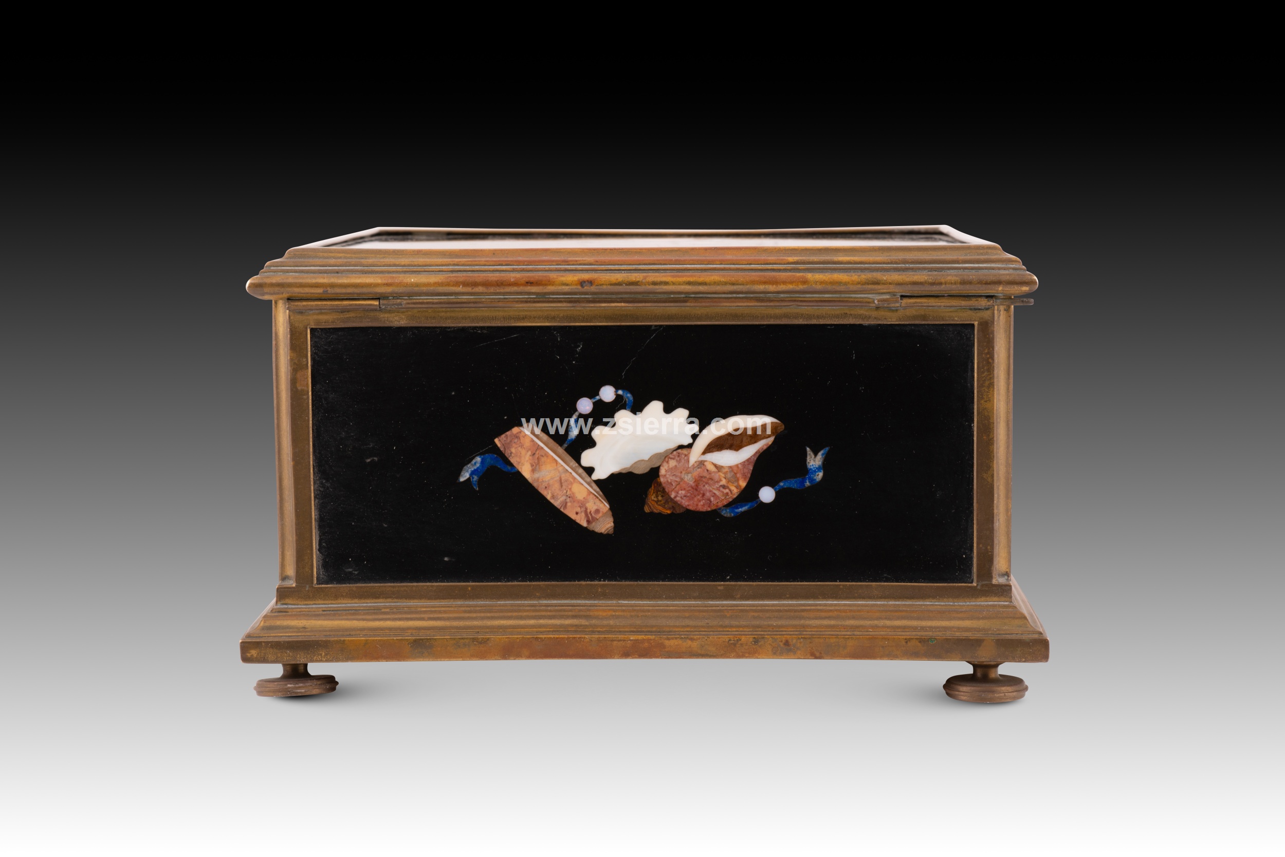 Caja. Piedras duras, metal, textil. Posiblemente Italia, siglo XIX.
