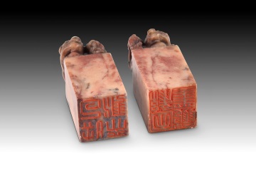 Pareja de muebles de farmacia orientales. Madera tallada y policromada. Posiblemente China, siglo XIX.