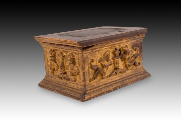 Arcón gótico. Madera de pino tallada, hierro. Siglo XVI.